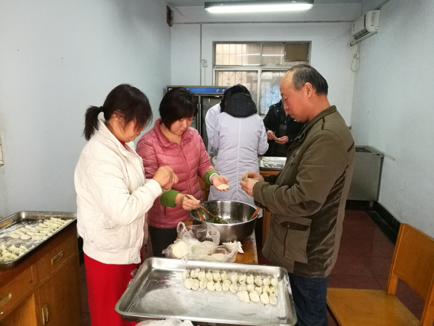 在冬至來臨的前幾天,公司王春敏副總經(jīng)理特意囑咐食堂,讓公司員工一定吃上冬至水餃。食堂負責(zé)人侯景梅為了讓員工們品嘗到美味可口的餃子,提前一天采購了韭菜、大蔥等食料,組織廚師和幫廚把菜仔細摘洗、晾干。12月21日,食堂一早購入豬肉,為了保證餃子的質(zhì)量及口味,由廚師負責(zé)餃子餡的整個調(diào)制流程,食堂全體員工也早早地忙開了,切菜、配料、備盤子等,由于食堂工作人員少,為了使員工能在中午按時吃上水餃,王總安排工作不緊張的部門提供支援,環(huán)境部、結(jié)構(gòu)部、辦公室對當(dāng)天工作做了安排和調(diào)整,組織胡巧玲、楊巧玲、岳紅、王慶、閆保亮、冉金榮去食堂幫廚,大家分工明確、井然有序、忙而不亂,兩個小時后,約2000個韭菜大肉餡、香噴噴的餃子就包好了。當(dāng)一碗碗熱騰騰的水餃遞到員工的手里,頓時一種幸福洋溢在每個人的臉龐上。