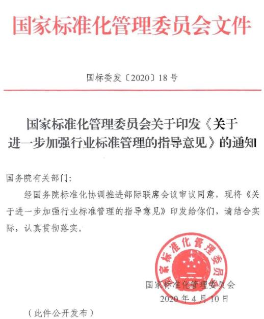 日前,國家標(biāo)準(zhǔn)化管理委員會印發(fā)了《關(guān)于進一步加強行業(yè)標(biāo)準(zhǔn)管理的指導(dǎo)意見》,具體內(nèi)容如下。