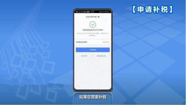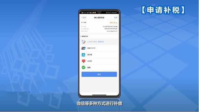 9、如果您需要補(bǔ)稅,可在申報(bào)成功后點(diǎn)擊【申請(qǐng)補(bǔ)稅】,可以通過(guò)銀行卡、支付寶、微信等多種方式進(jìn)行補(bǔ)繳。